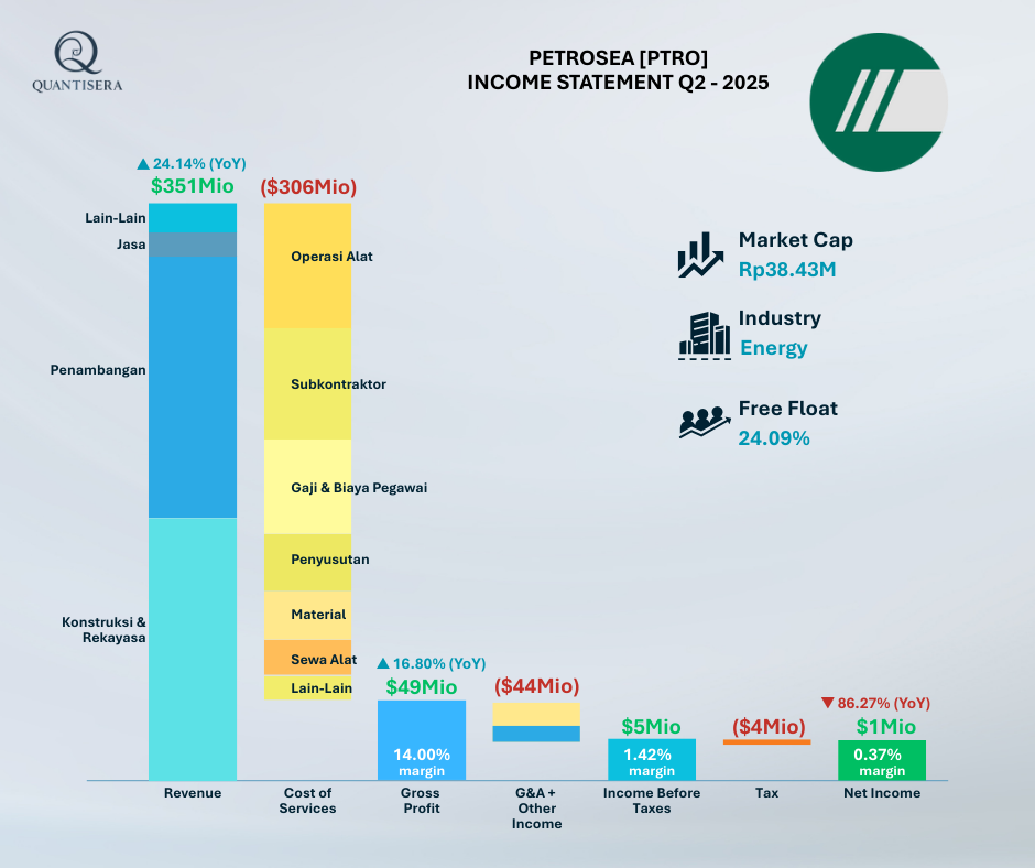 - Net Income: hanya $1 Mio (−86,3% YoY)